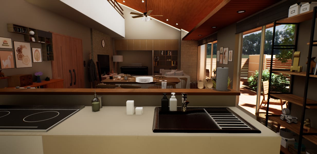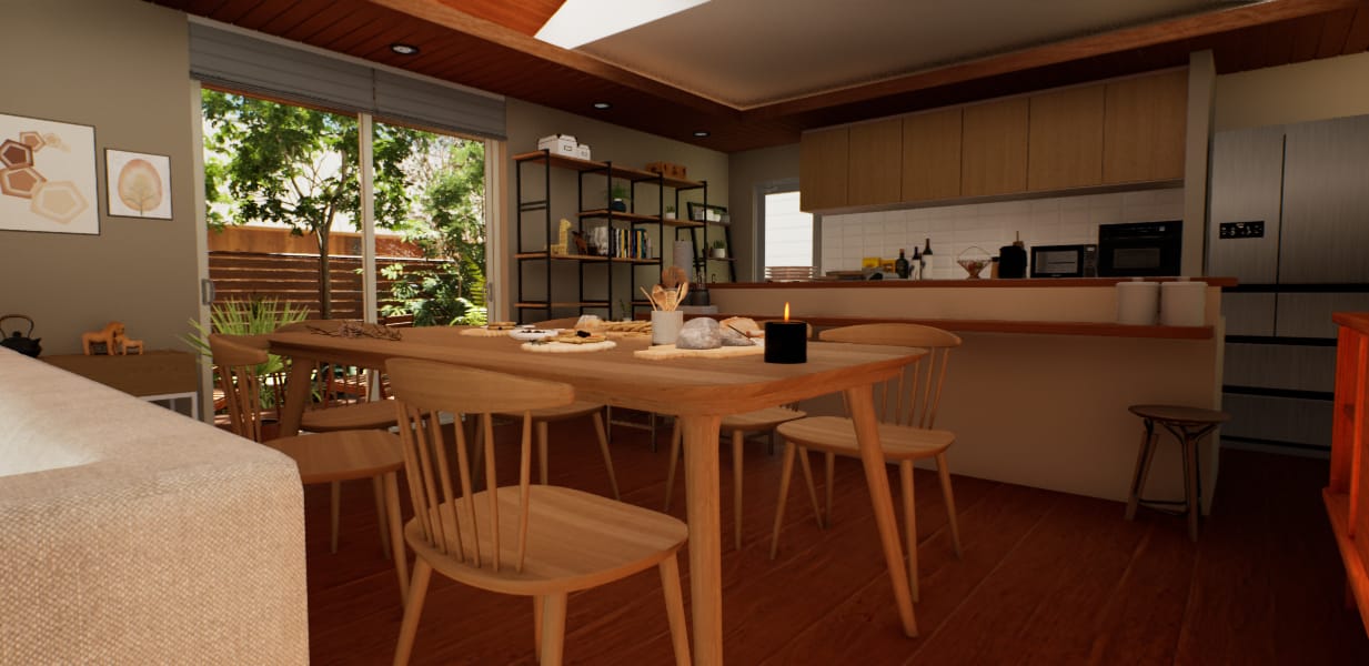 WoodyなNaturalテイストの戸建てのリビングダイニングキッチン