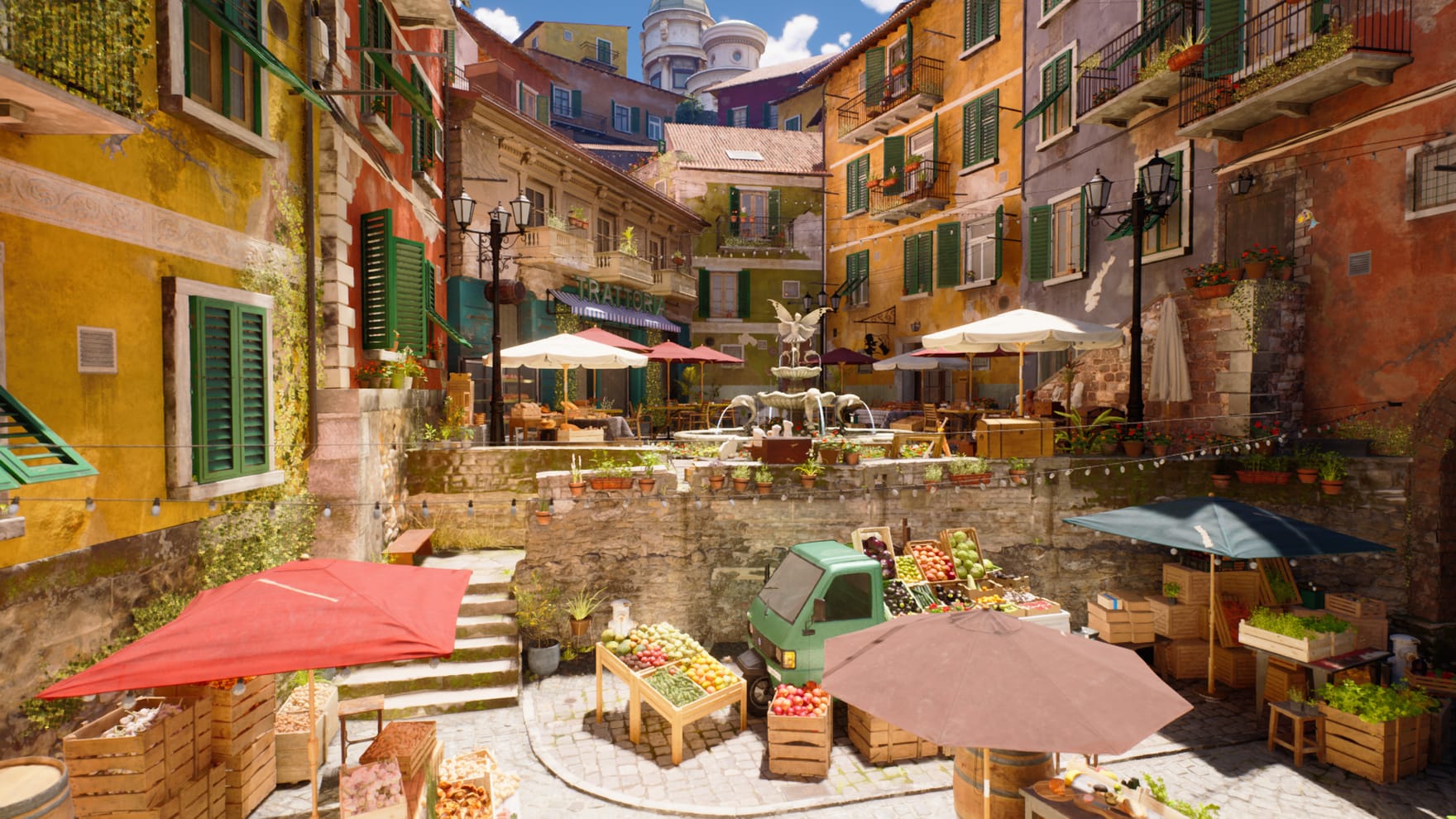 『historia』開発、技術デモゲームをVPへ移植。南欧マーケットをロケできる。