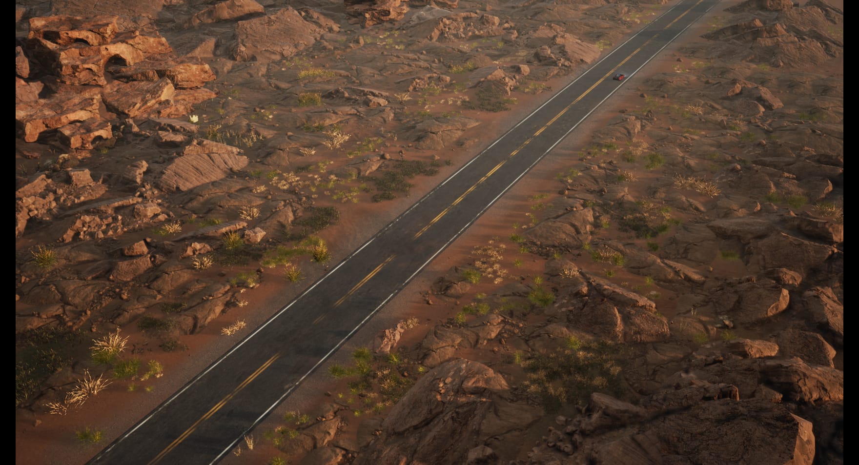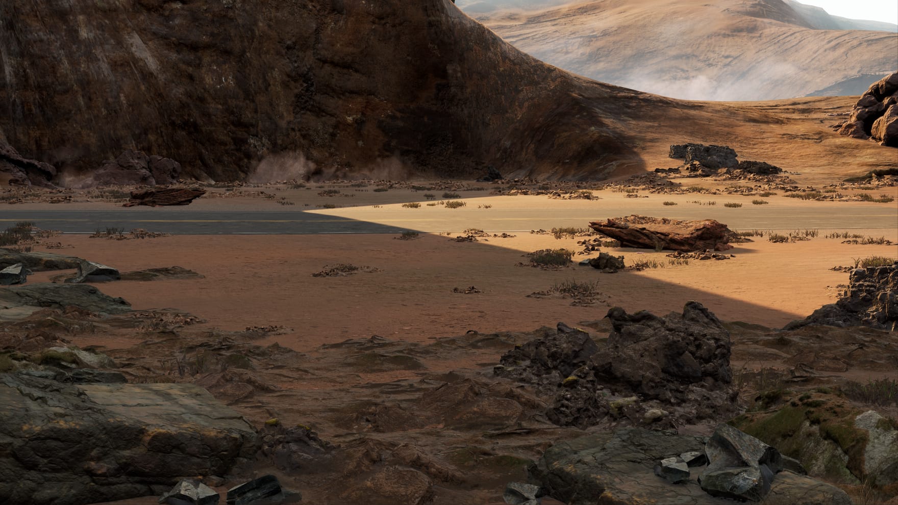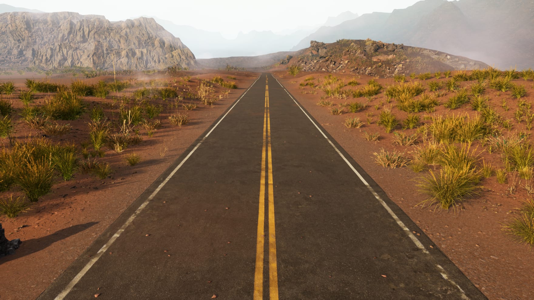 アメリカの荒涼とした自然をイメージさせる荒野の一本道。
