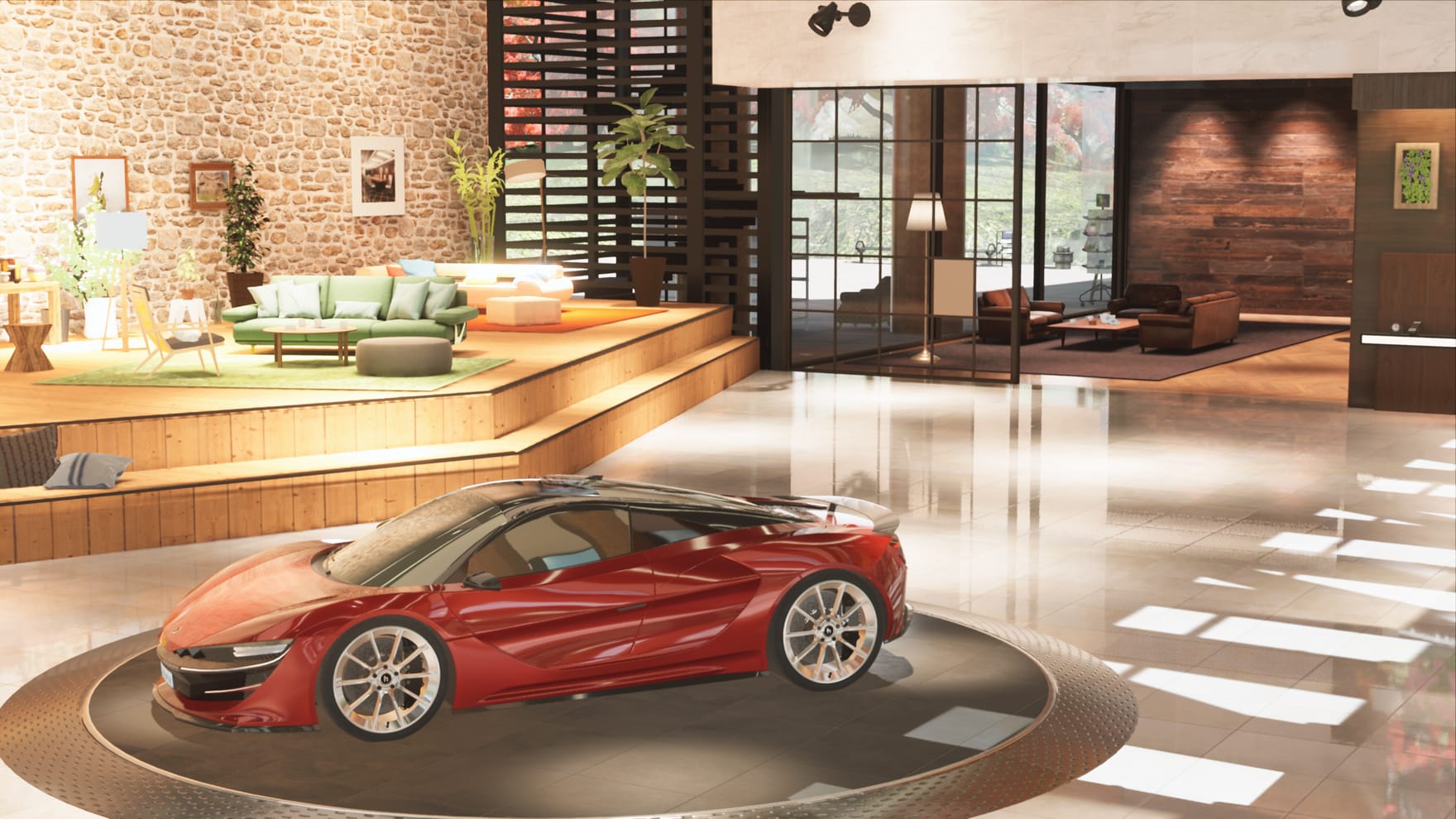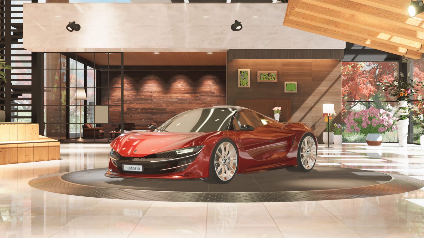 広大なバーチャルカーショールーム空間。企画に応じて様々なイメージのイベント空間に。