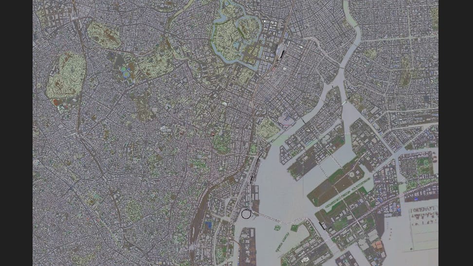 港区周辺の広域を再現した都市モデル。