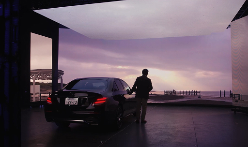 あらかじめ撮影した素材やフッテージなどを高精細LEDディスプレイに投影し手前に人物を立たせて撮影する手法。LED環境光を活かしたライティングでまるでロケ地でリアルに撮影したかのようなルックになります。