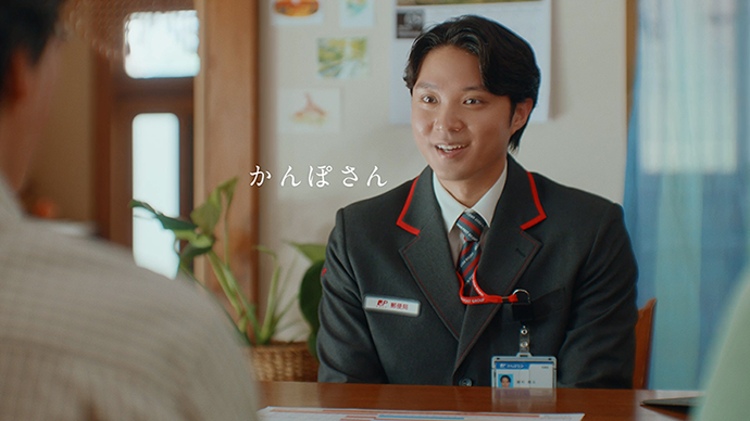 磯村勇斗さん演じる「かんぽさん」が登場するかんぽ生命のTVCM
